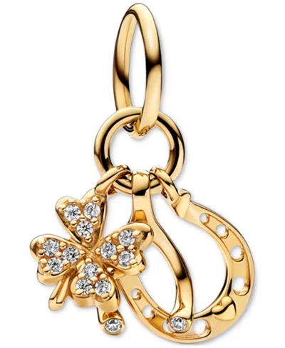 14k Gold Clover, Wishbone And Horseshoe Cubic Zirconia Dangle Charm