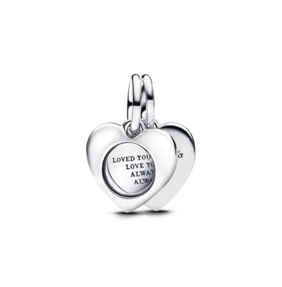 Engravable Heart Magnifying Glass Double Dangle Charms In Sterling Silver