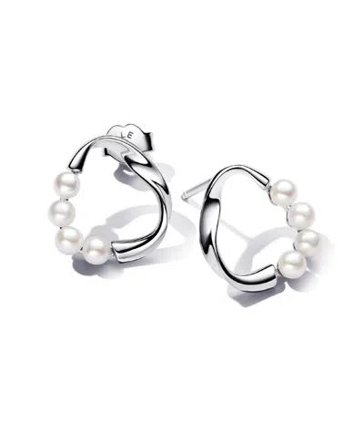 Silver Shaped Circle Treated Freshwater Cultured Pearls Stud Earrings