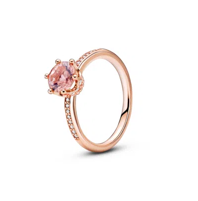 Cubic Zirconia Moments Pink Sparkling Crown Solitaire Ring In Rose Gold