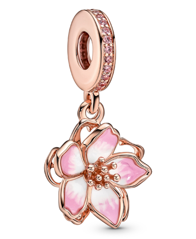 Cubic Zirconia Cherry Blossom Dangle Charm In Pink