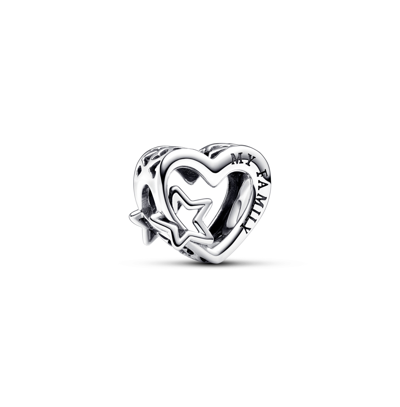 Sterling Silver Openwork Family Heart Star Charm In No Color