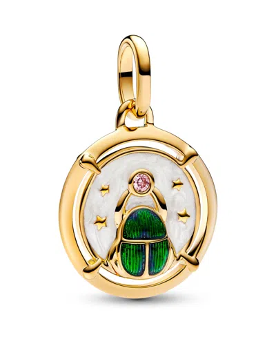 Cubic Zirconia Pink Butterfly Quote Double Dangle Charm In Gold