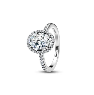 Oval Sparkling Halo Statement Sterling Silver Ring