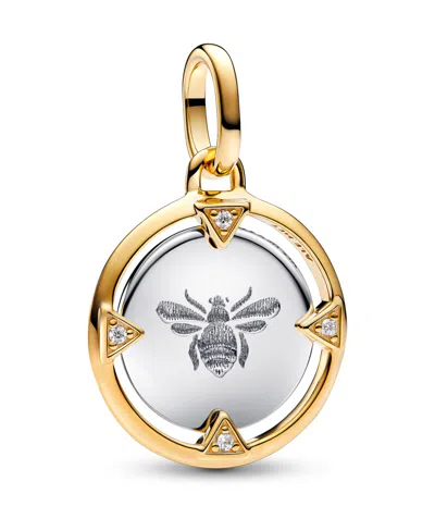 Sterling Silver And 14k Gold-plated Unique Metal Blend Bee Medallion Charm In Silver Gold