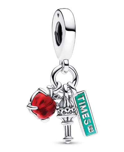 Sterling Silver Nyc Apple, Torch And Street Sign Triple Dangle Charm