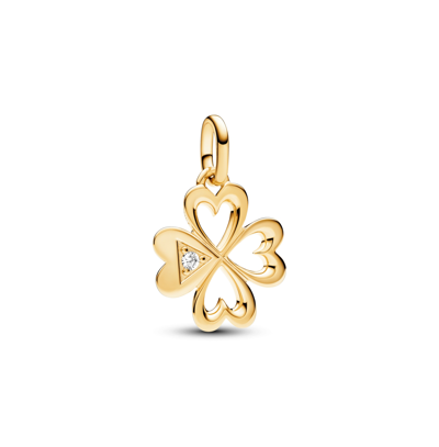 Me Cubic Zirconia Heart Four-leaf Clover Medallion Charm In Clear
