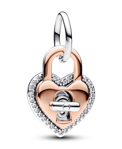 Sterling Silver And 14k Rose Gold Padlock Heart Charm