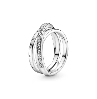 Timeless Sterling Silver Pave Crossover Dual Band Ring In Clear