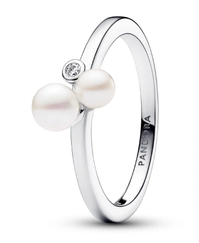 Sterling Silver Timeless Duo Treated Freshwater Cultured Pearls Ring In Gold