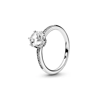Cubic Zirconia Moments Clear Sparkling Crown Solitaire Ring In Silver