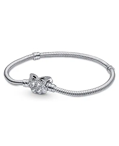 Moments Cubic Zirconia Butterfly Clasp Snake Chain Bracelet In Silver