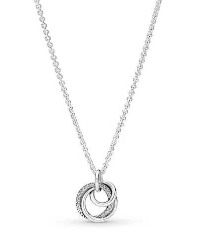 Family Always Encircled Sparkling Cubic Zirconia Pave Pendant Necklace In Silver
