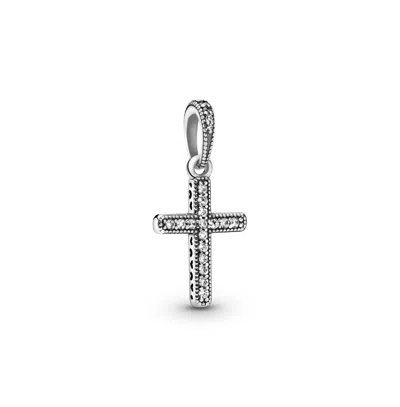 Cubic Zirconia Sparkling Cross Dangle Charm In Clear