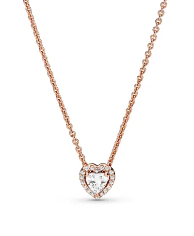 Timeless Sterling Silver Sparkling Heart Halo Cubic Zirconia Pendant Collier Necklace In Metallic