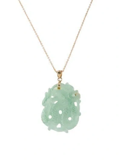 Pre-owned 14k Chain Necklace W/ Unbranded Jadeite Pendant, 17.5" In Multi