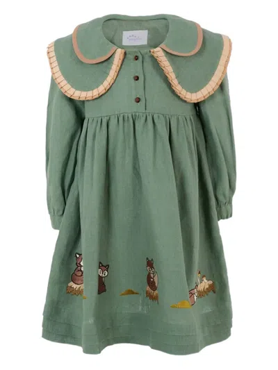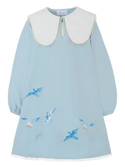 Kids' The Flight Of Birds Embroidered Peter Pan-collar Dress In Blue