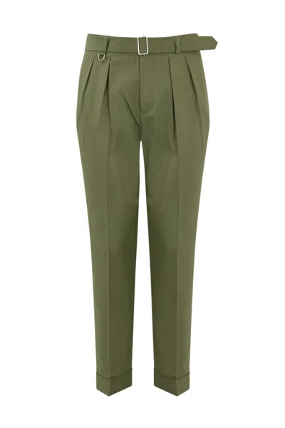 Cotton Blend Chino Trousers With Belt In Green