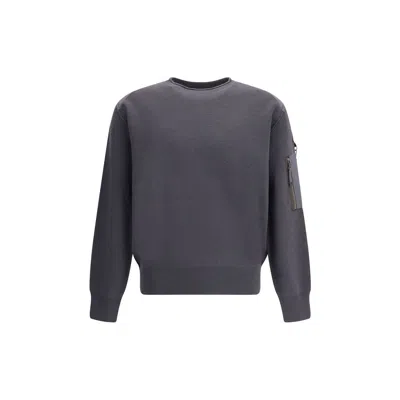 Ribbed Cuffs And Hem Sweatshirt With Zip Pocket In Black
