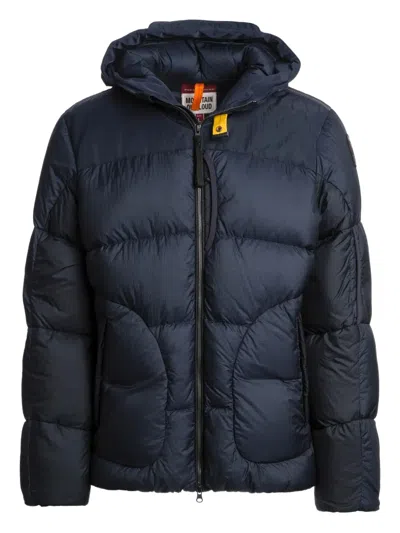 Padded Hooded Down Jacket With Zip Pockets In Blue
