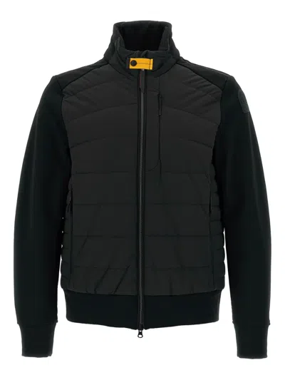 Quilted Black Down Jacket With Hood And Textured Sides In Multi
