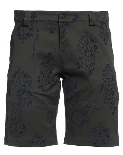 Paria /farzaneh Man Denim Shorts Dark Green Size Xl Cotton, Elastane