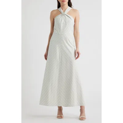 The Julianne Stripe Cotton Maxi Dress In Brown
