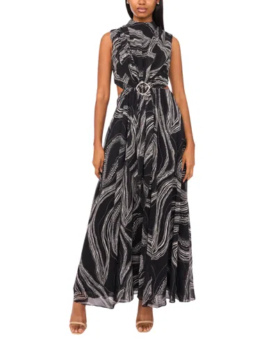 Women's Mock Neck Cut Out Maxi Dress In Black