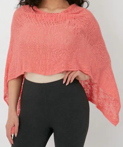 Palm Leaf Sweater Poncho In Coral In Pink