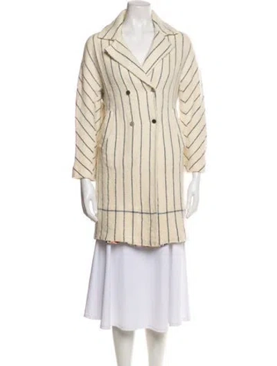 Pre-owned Wool Striped Coat In White