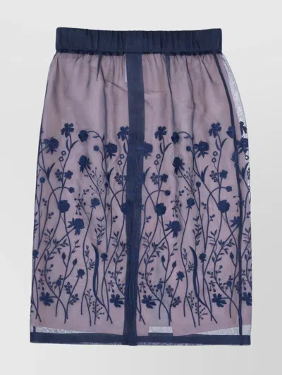 Tulle Skirt With Floral Embroidery And Slit In Blue