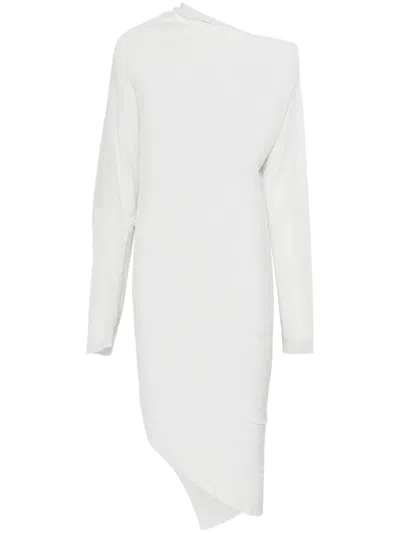 Asymmetric Midi Dress In White
