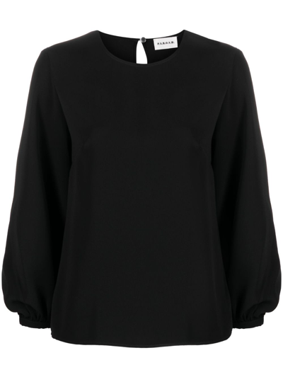 Long-sleeve Round-neck Top In Black