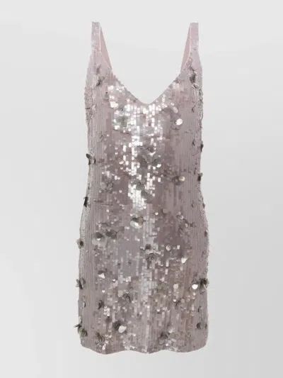 Glow Sequined V-neck Mini Dress In Grey
