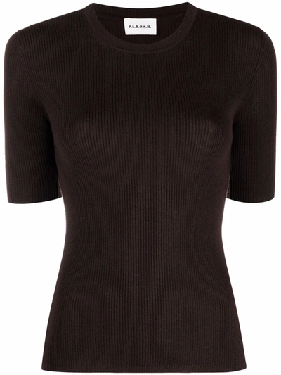 Parosh Ribbed Knit Wool T-shirt In Braun