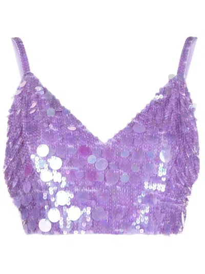 V-neck Sequin Embellished Crop Top In Purple