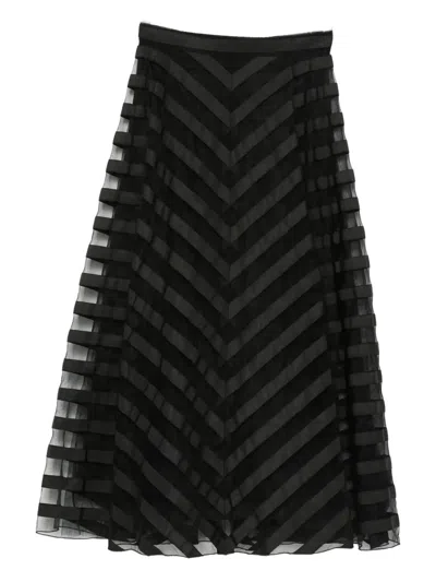 Chevron Striped Midi Skirt In Black