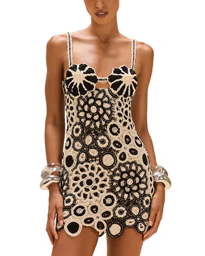 Pampas Mini Dress With Embroidery And Fringes In Gold