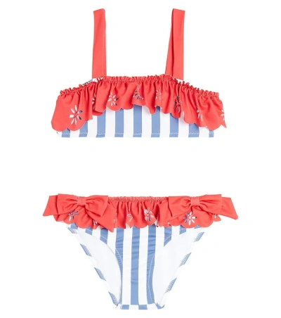 Kids' Striped Ruffled Bow-detail Bikini In Marine Stripes