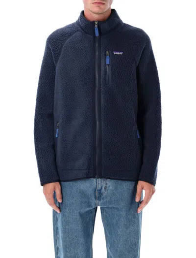 Mens Dark N Utility Blue Retro Pile High-neck Recycled-polyester Jacket