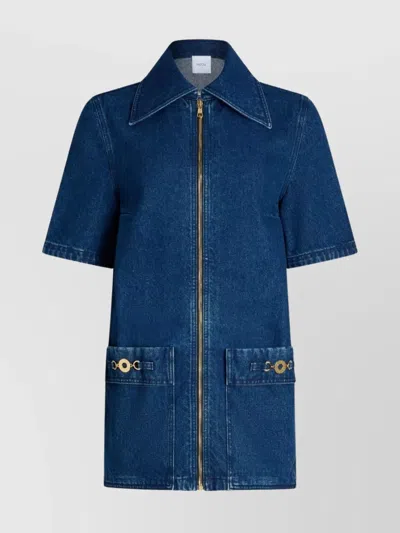 Cropped Cotton Jacket Short Sleeves Collar In Multi