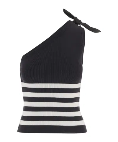 Striped-pattern Bow-detail One Shoulder Top In Black