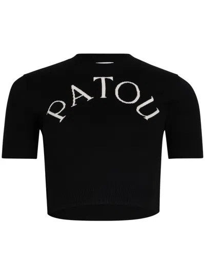 Large Jp Monogram Trapeze Tote In Raffia In Navy Blue Black