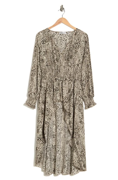 Patterned High-low Button-up Shirt In Beige