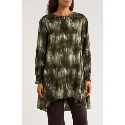 Abstract Print Long Sleeve Tunic Top In Green