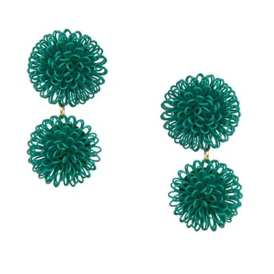 Women's Green Pompom Flower Earrings