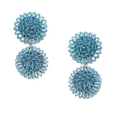 Women's Blue Pompom Flower Earrings