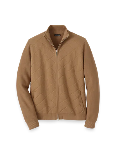 Cotton Full Zip Mock Neck Sweater Jacket In Brown