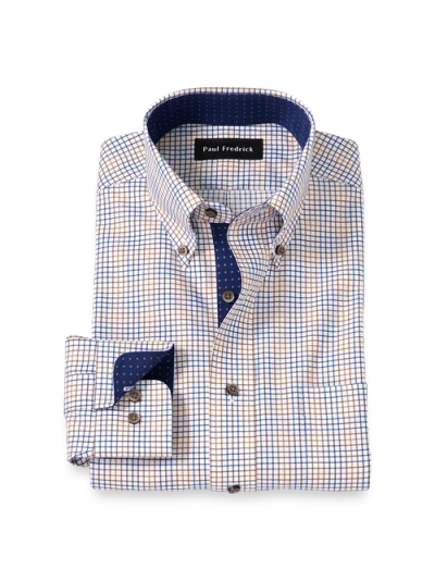 Tailored Fit Comfort Stretch Non-iron Tattersall Dress Shirt With Contrast Trim In Brown