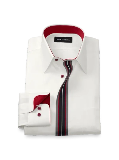 Tailored Fit Comfort Stretch Non-iron Solid Dress Shirt With Contrast Trim In White